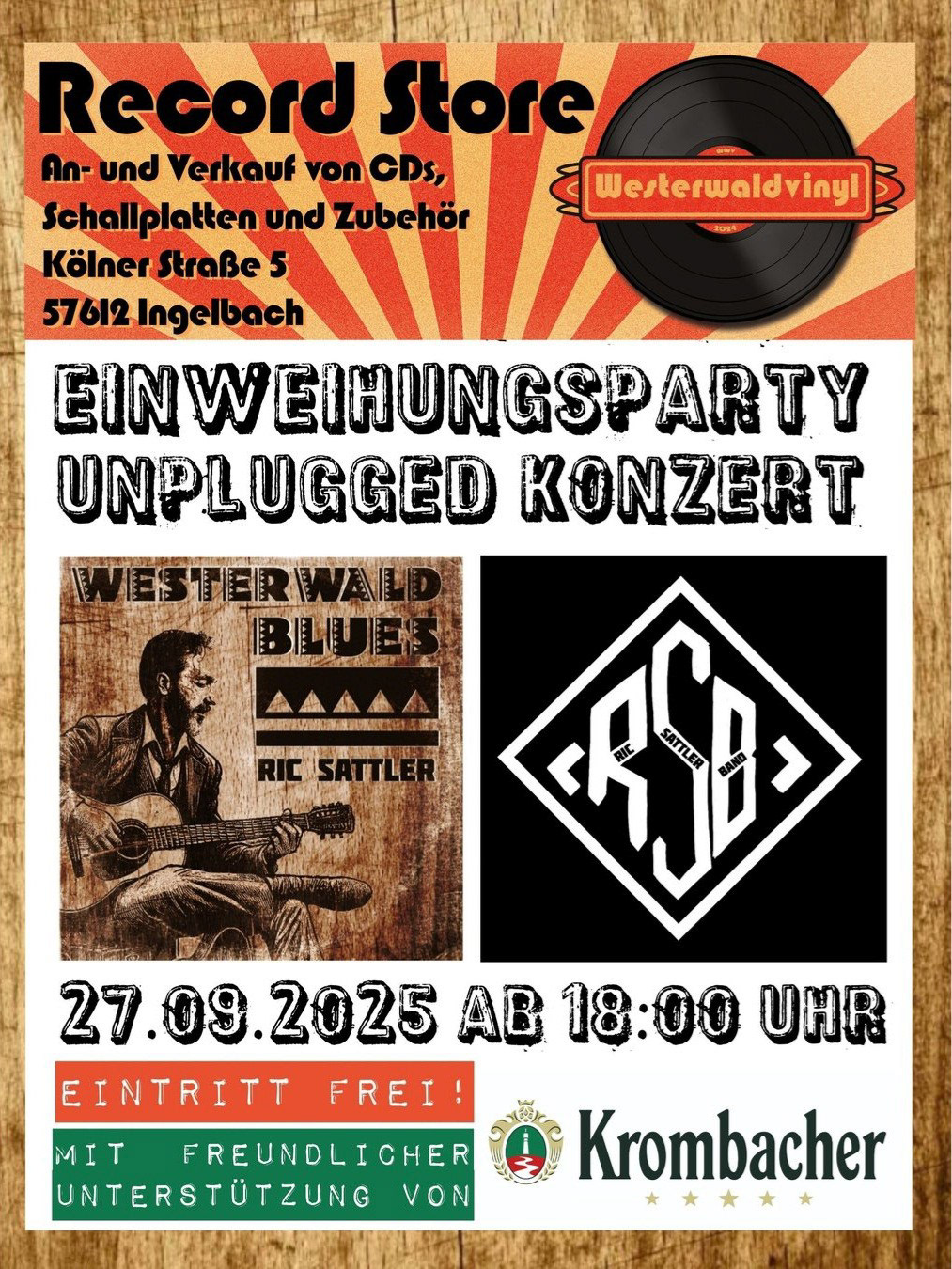 Ric Sattler stellt an diesem Abend exklusiv bei Westerwaldvinyl Stücke aus seinem neuen, heimatbezogenen Album "Westerwald Blues" vor, das am 01.07.25 erschienen ist.